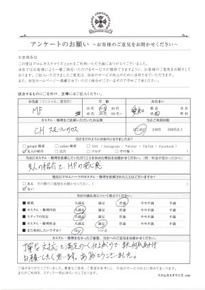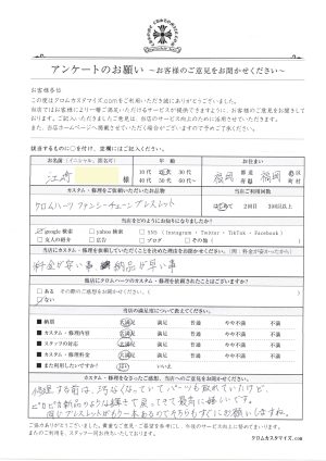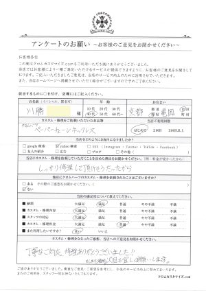 ホームページに自分と同じ箇所の修理事例や画像が掲載されており、仕上がりがイメージできて安心できた。