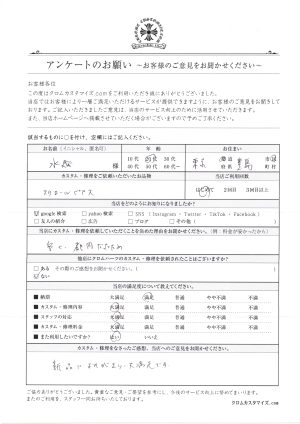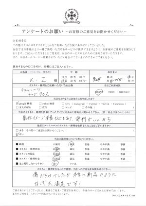 更なるサービスの充実と向上を目指し、当店をご利用頂いたお客様にアンケートのご協力をお願いしており、たくさんのあたたかいお言葉を頂き、スタッフ、職人一同大変励みになっております。