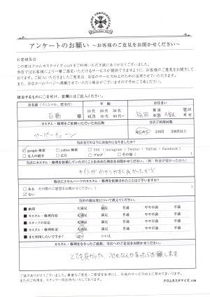 ラインでの早い対応、ていねいなやり取りだった為、安心感がありました。