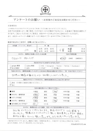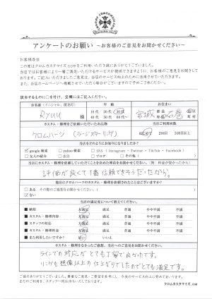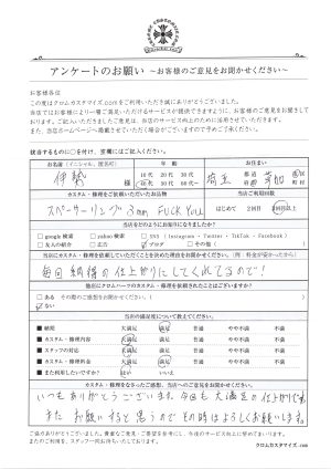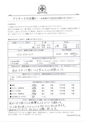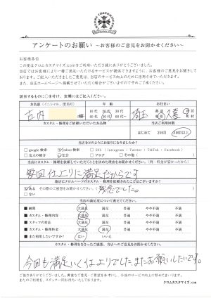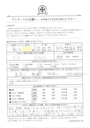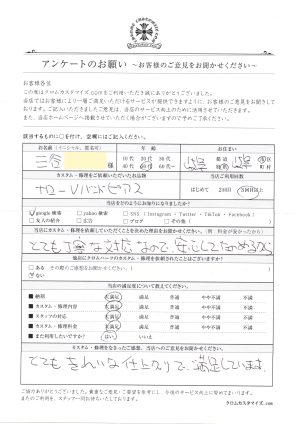 更なるサービスの充実と向上を目指し、当店をご利用頂いたお客様にアンケートのご協力をお願いしており、たくさんのあたたかいお言葉を頂き、スタッフ、職人一同大変励みになっております。