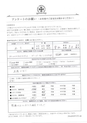 一部ではございますが、先月中に頂いたアンケートの内容をご紹介させて頂きます。